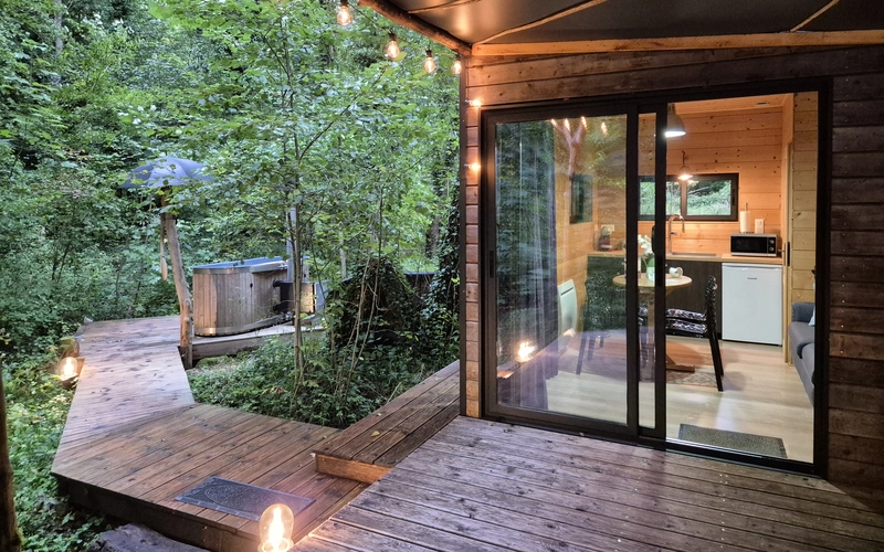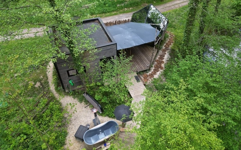 Lacus, dont le nom signifie « point d’eau » en latin, murmure déjà la promesse d’un séjour baigné de fraîcheur et de tranquillité. Niché près du ruisseau et de sa paisible mare, ce lodge unique vous invite à une immersion totale dans la nature. Son design en bois, véritable hymne à l’harmonie, fusionne harmonieusement avec le paysage environnant, créant une atmosphère apaisante, propice à la détente et à la contemplation.