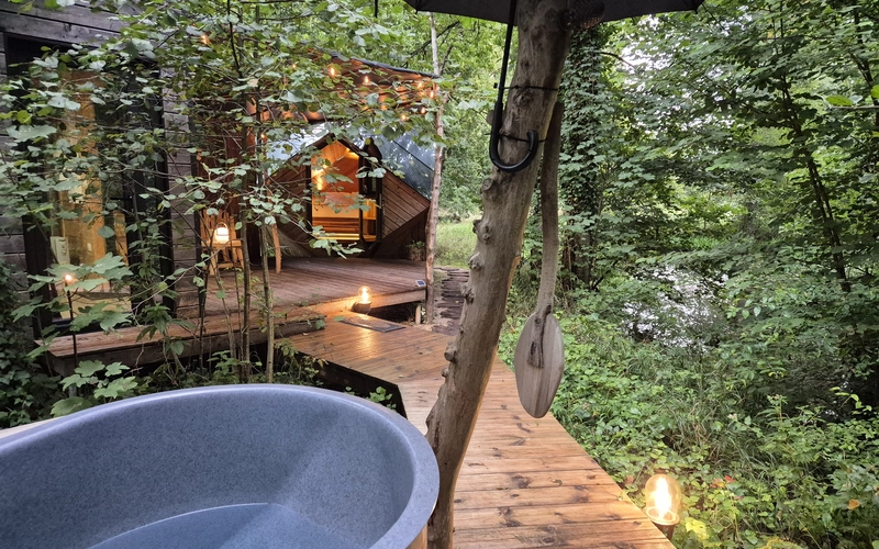 Dormez dans un refuge cocooning dans les arbres, avec spa privatif. Idéal pour une escapade romantique et insolite.
